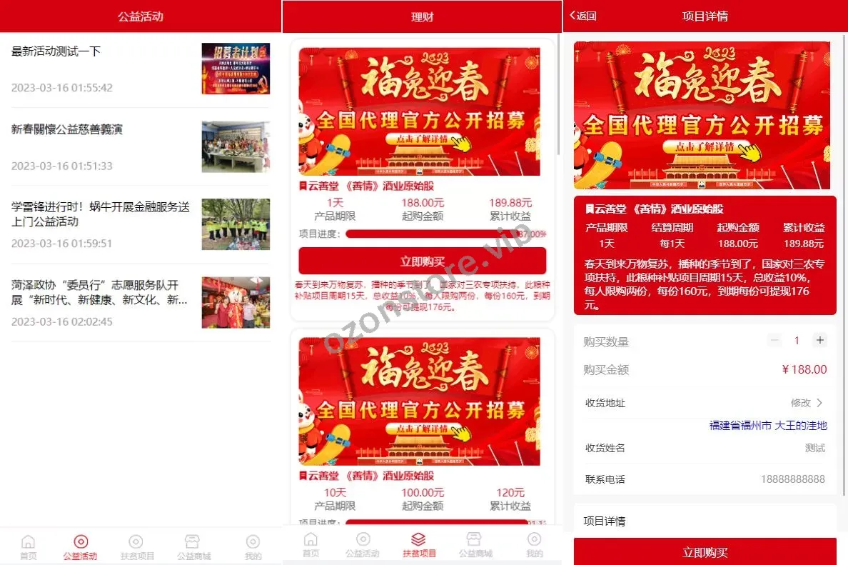 新版公益投资系统/扶贫投资理财/爱心捐赠/三级分销源码 🌟 主要功能亮点 🌟 ✅ 全新开发:使用FastAdmin框架开发,前端HTML源码全开源✅ 爱心捐赠功能:支持爱心捐赠,帮助需要的人✅ 产品投资:提供多种投资理财方案✅ 商城功能:内置商城,用户可进行商品购买✅ 签到功能:每日签到,获得奖励✅ 三级分销:支持多级分销,增加平台用户粘性 📌 适用于公益项目、扶贫投资、理财平台,系统功能全面,适合二次开发和独家开发! 项目投资理财