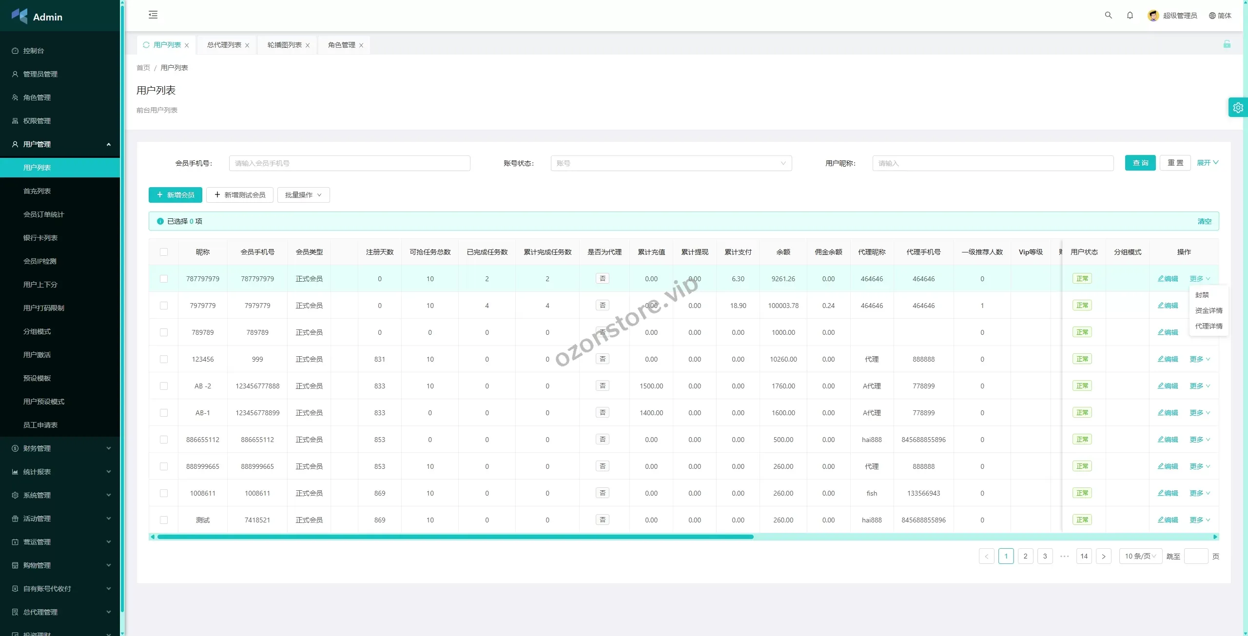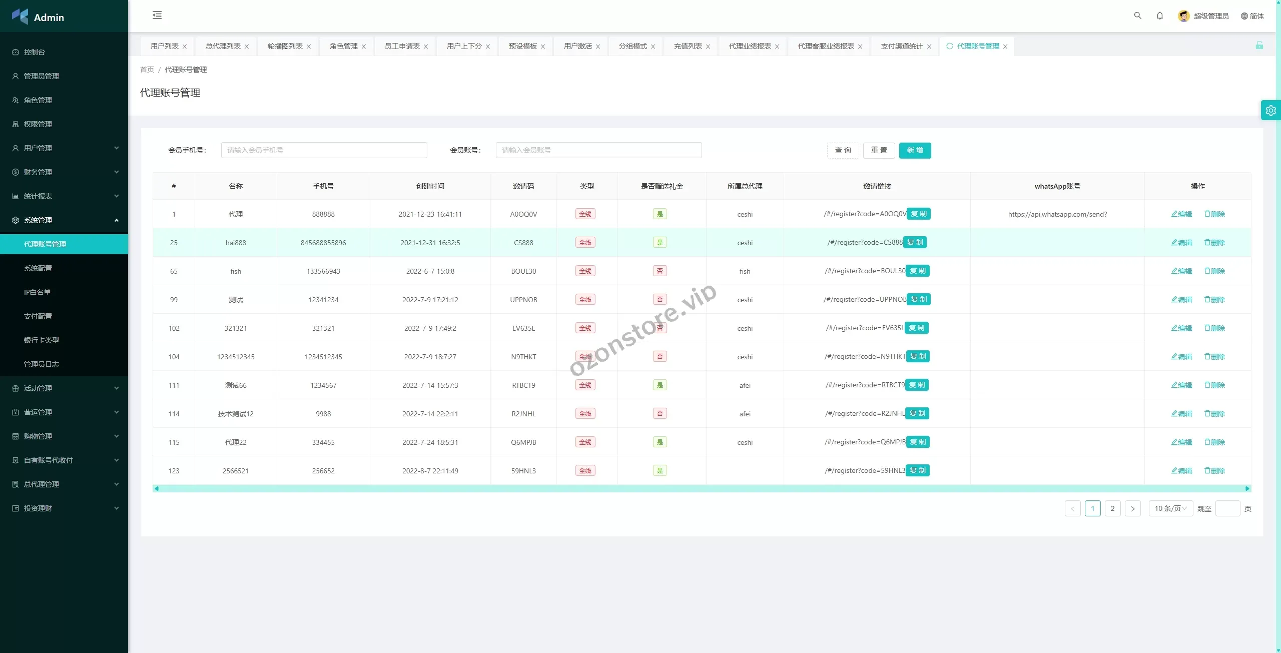 ✅ 代理管理:支持总代理和代理端的管理功能,管理员可控制代理权限。