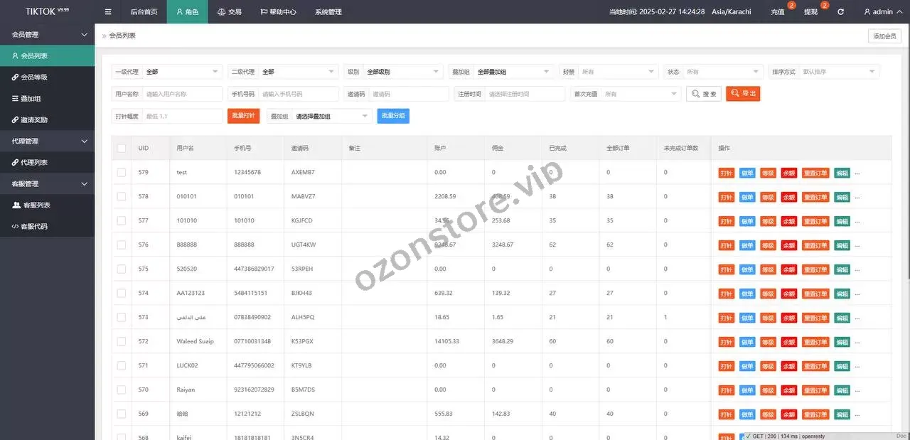 国外TIKTOK抢单刷单系统/多语种订单任务系统/打针重置全开源源码