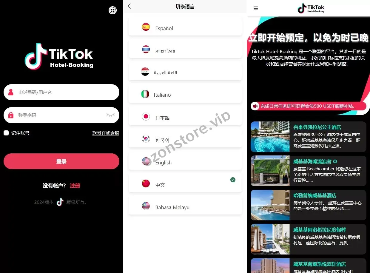 多语种TIKTOK酒店刷单系统/国外酒店抢单刷单/连单卡单源码 🌟 主要功能亮点 🌟 前端UI全新二次开发,新增多语种支持,完美适配TIKTOK平台 前端使用uniapp开发,实现手机与电脑端自适应界面 后端基于thinkphp框架,全开源,带完整的前端源码 提交订单时用户可选择并点击星级评价 系统支持连单卡单功能,完美实现刷单需求 提供高效、稳定的系统架构,助力提升用户体验 抢单刷单源码