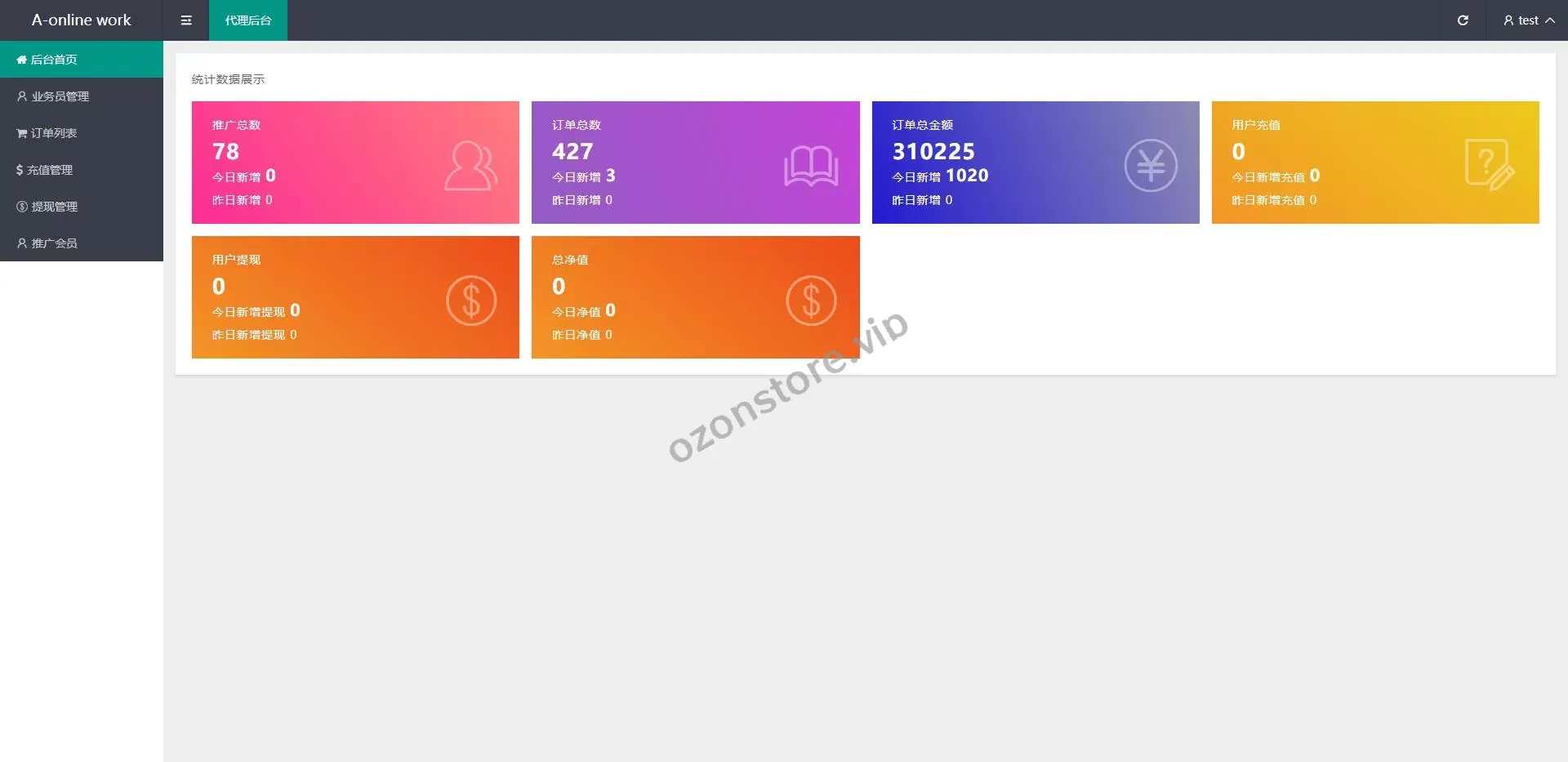 - 单独代理后台,支持代理管理团队及收益分配