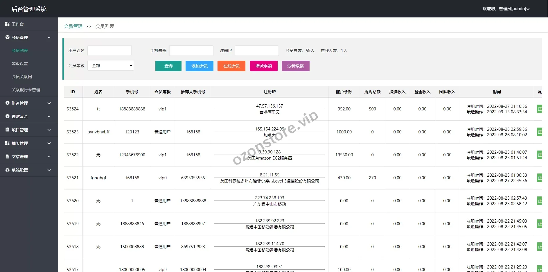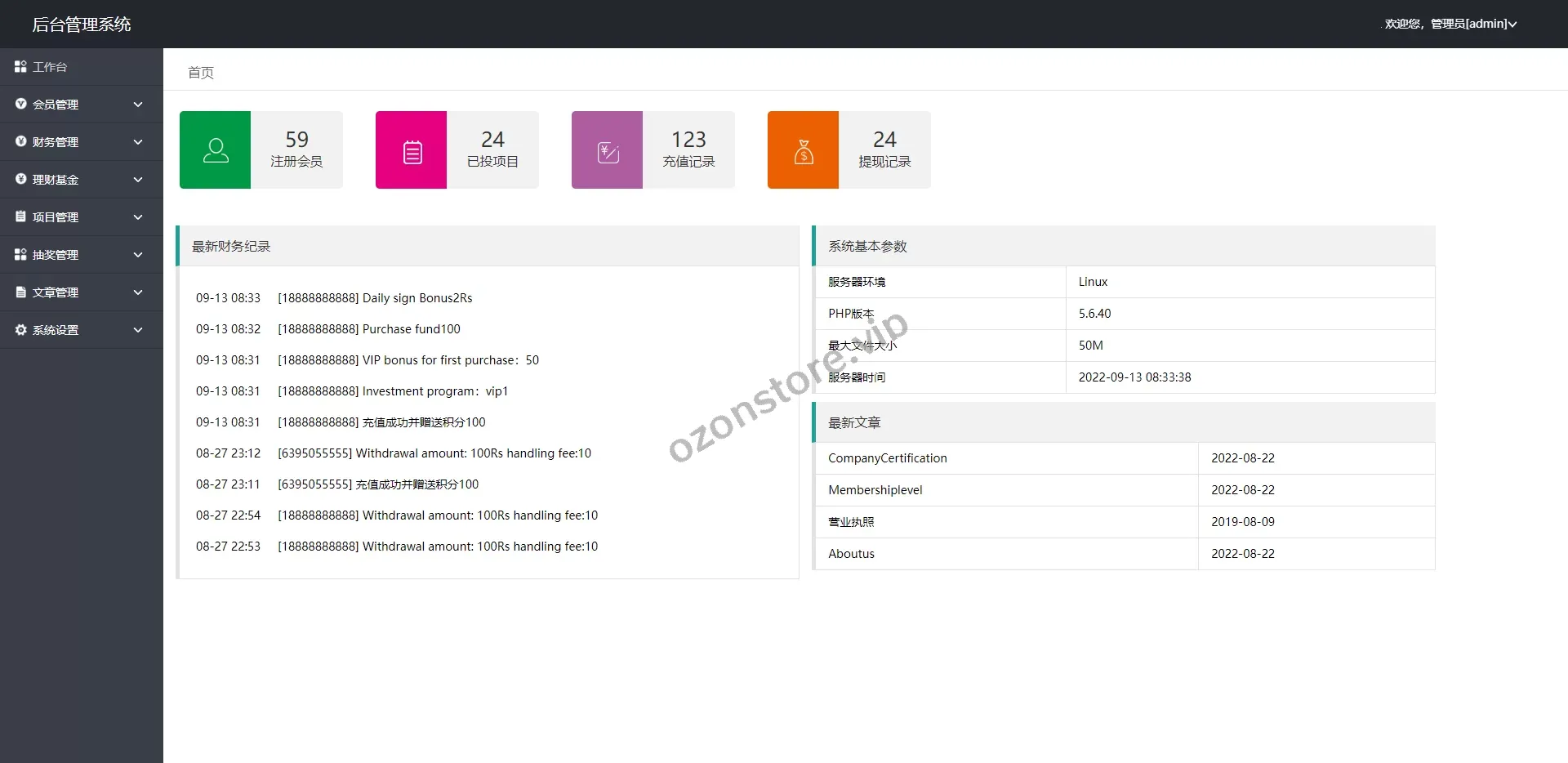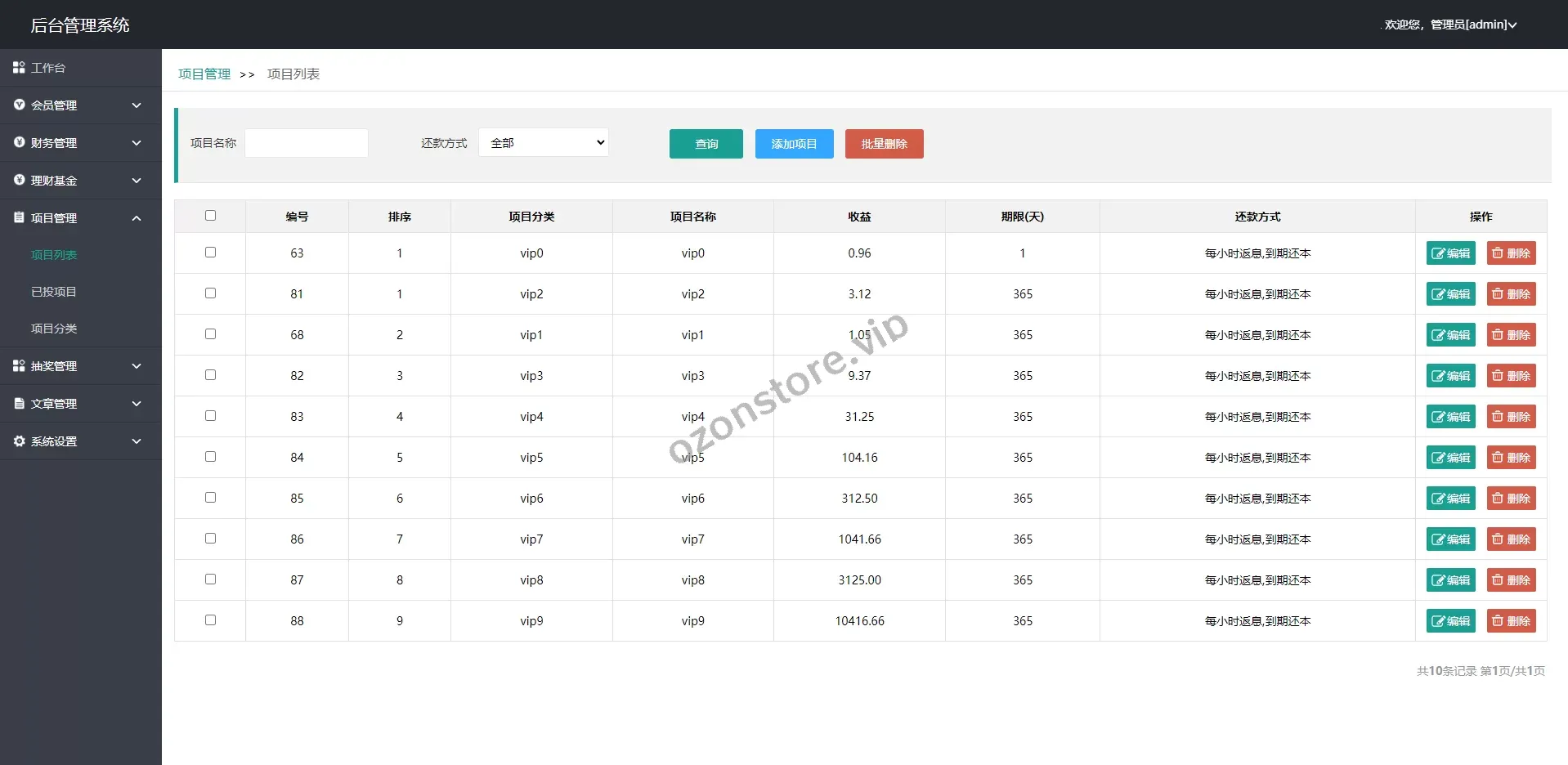 - 后台灵活管理,可自定义投资项目、收益规则、用户权限等