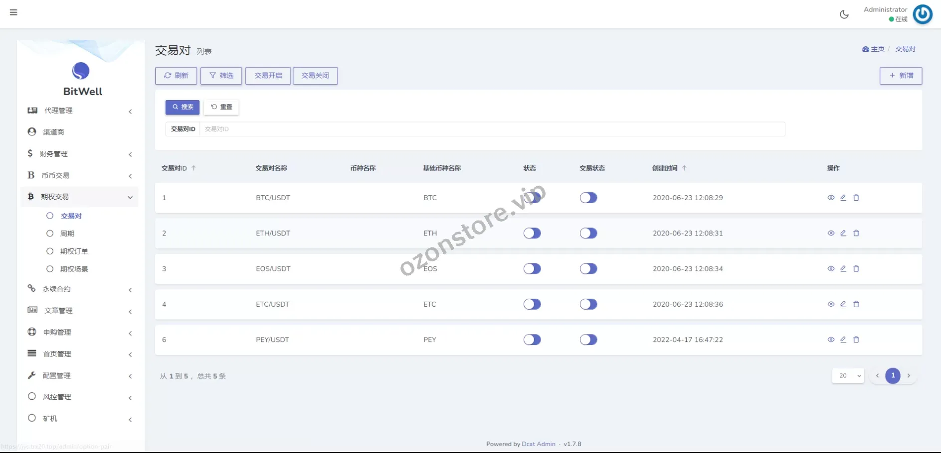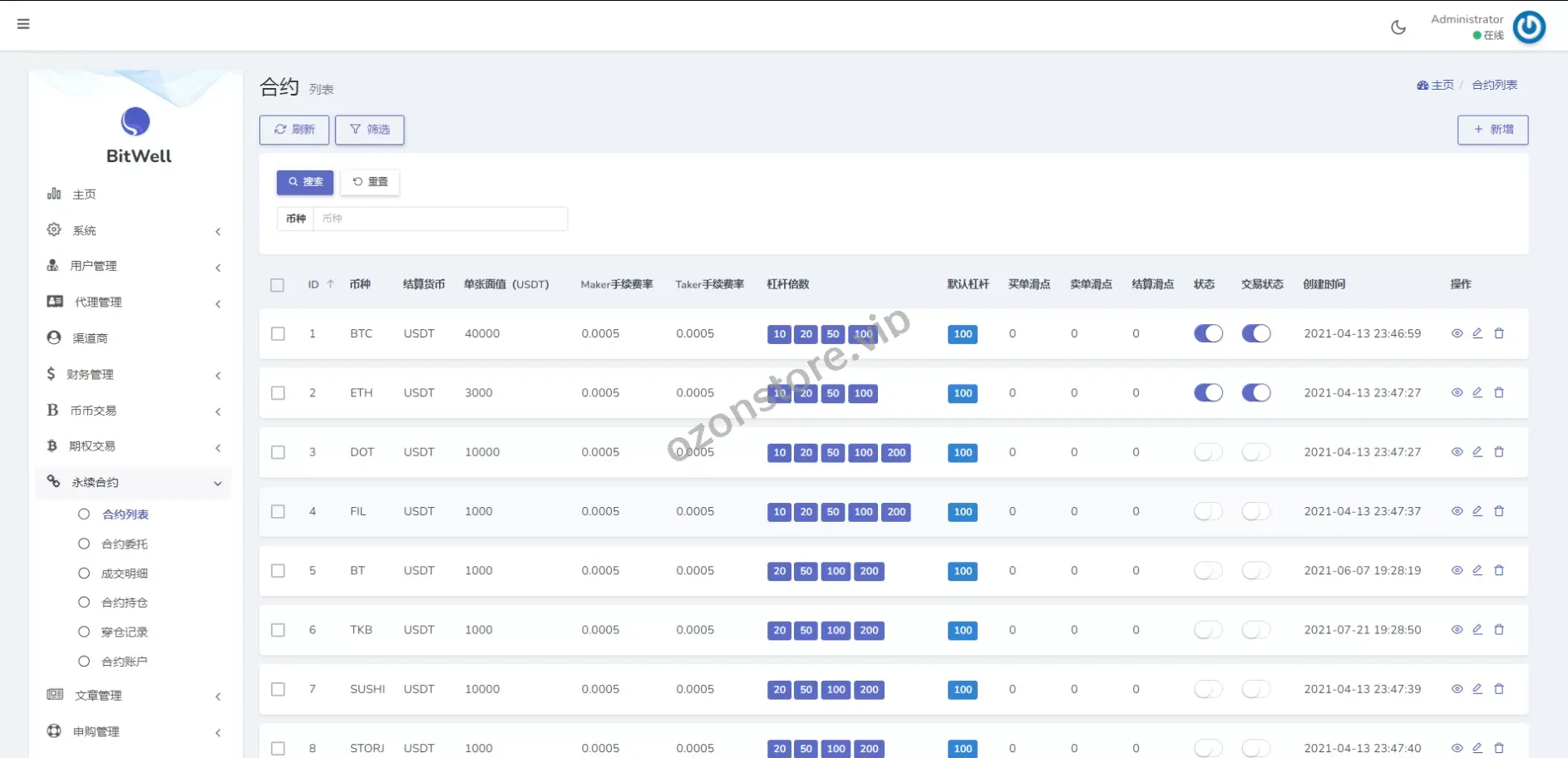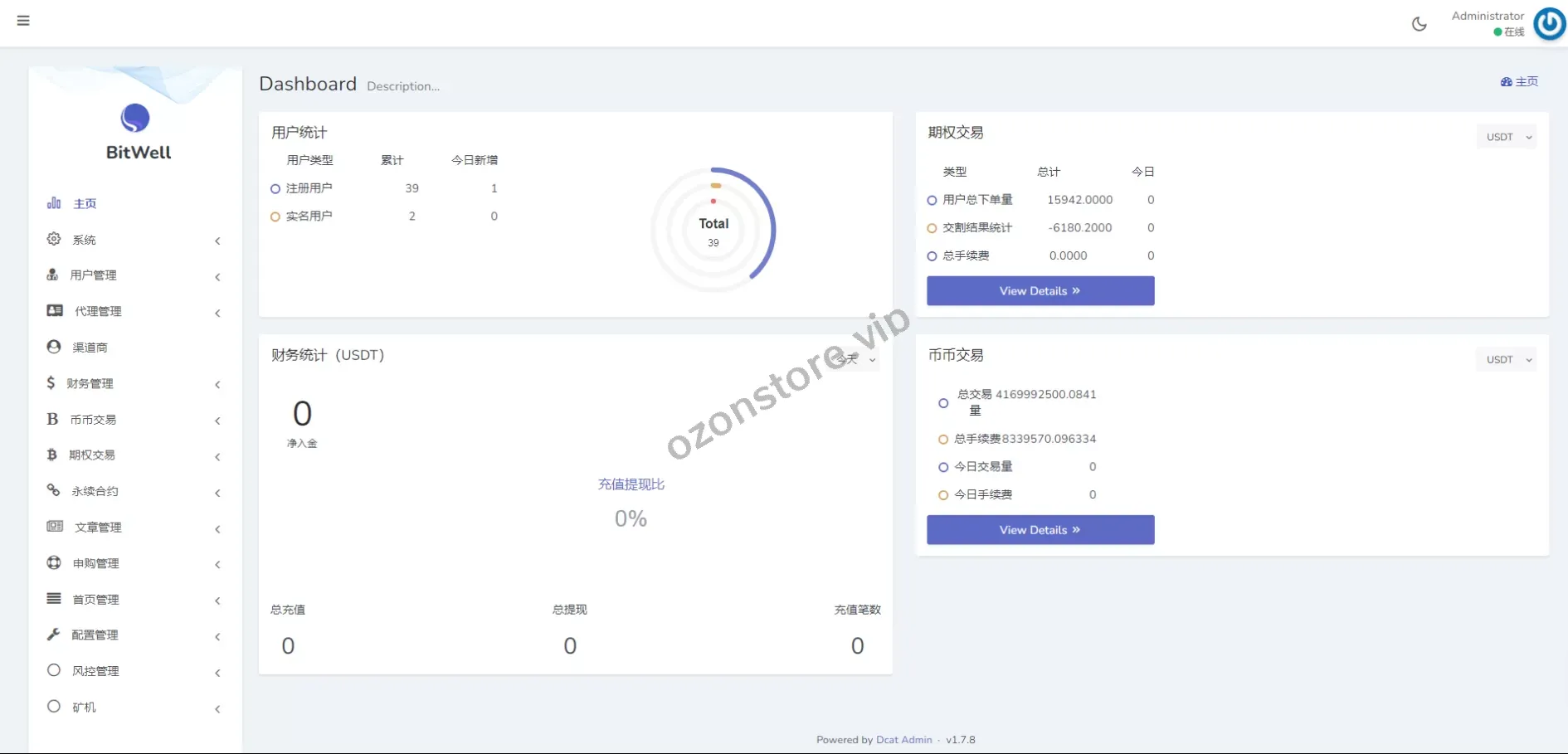 - 用户统计、交易统计、资产管理,全面了解平台动态