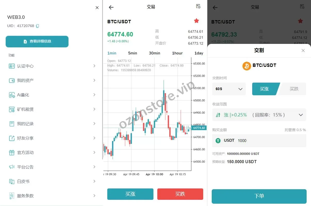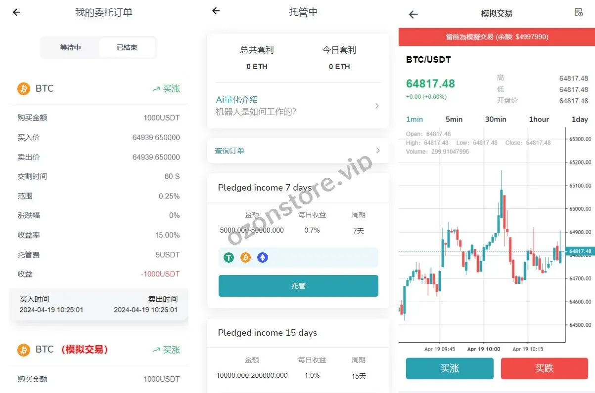 🔹 丰富交易功能:包括 秒合约交易、借贷、矿机、AI量化 等多种交易模式和投资功能,满足不同用户的需求。