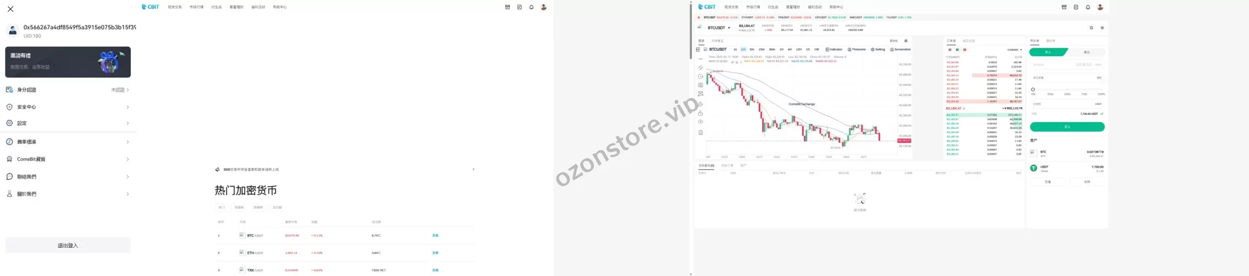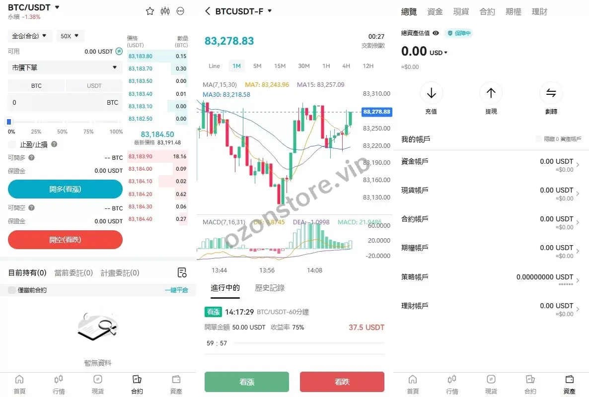 ✅ 虚拟币交易:接口正常运行,支持虚拟币交易对。