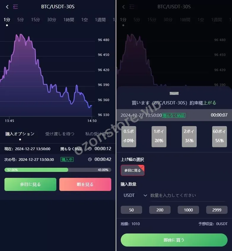 - 提供 期权交易,用户可以根据秒数选择 买涨或买跌,实现灵活交易策略。