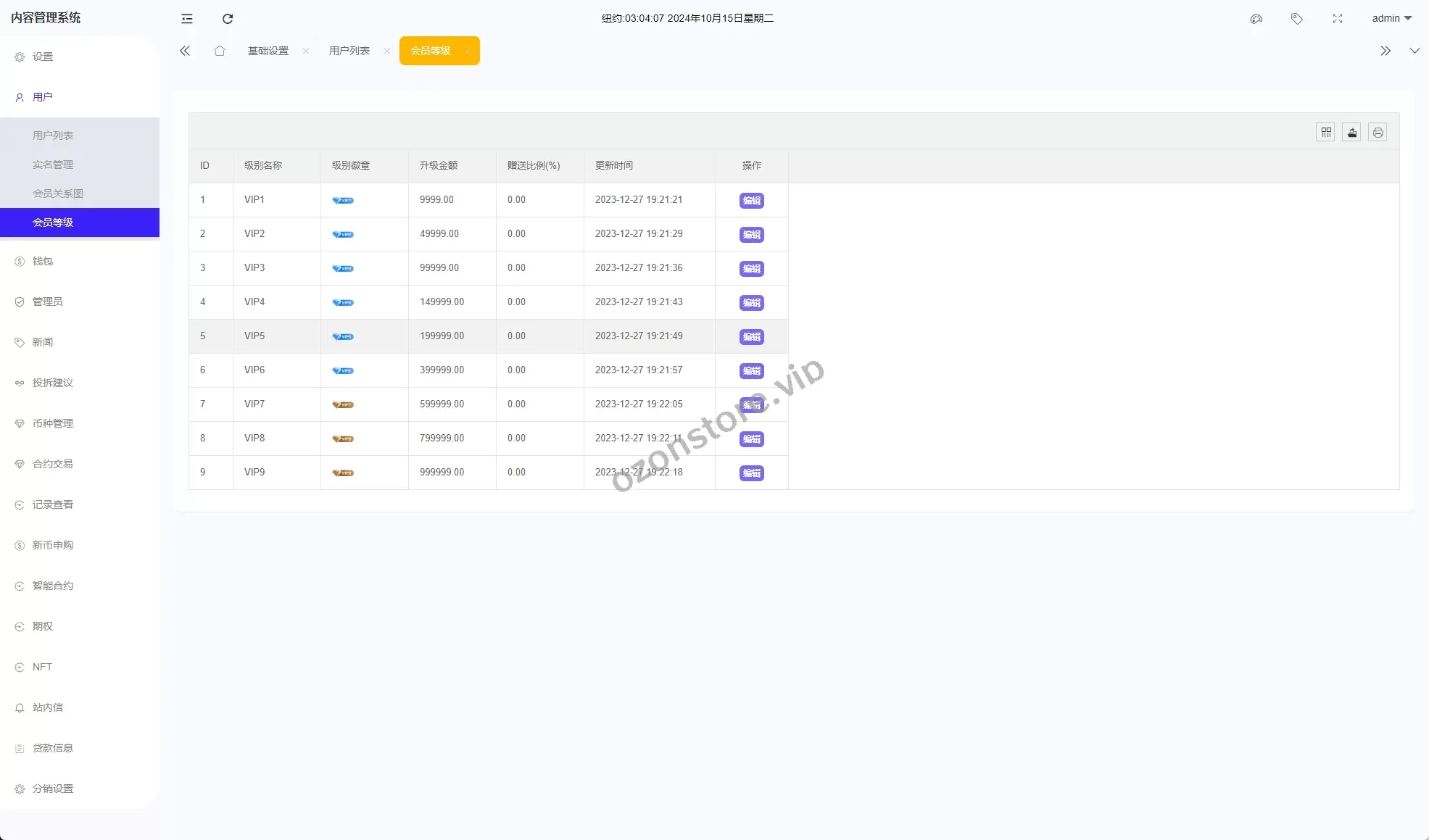 - VIP等级与佣金赠送:设置 VIP等级,并为VIP用户提供 佣金赠送。