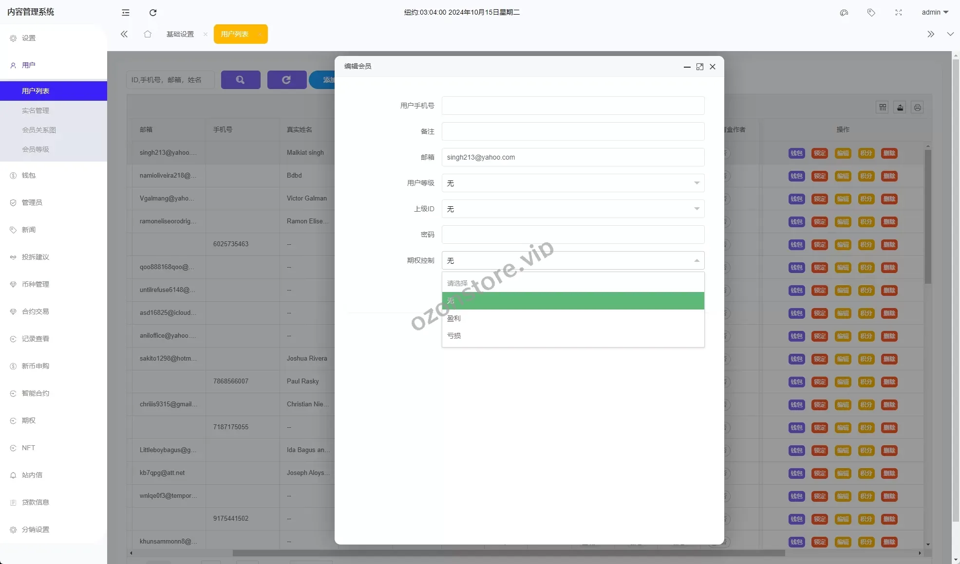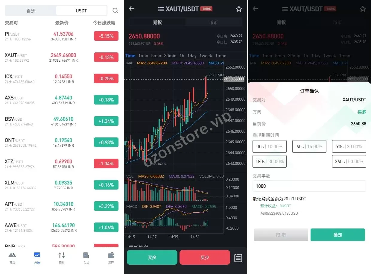- 期权交易(秒合约):支持 盈亏控制、单控、群控,为用户提供更精准的操作选择。
