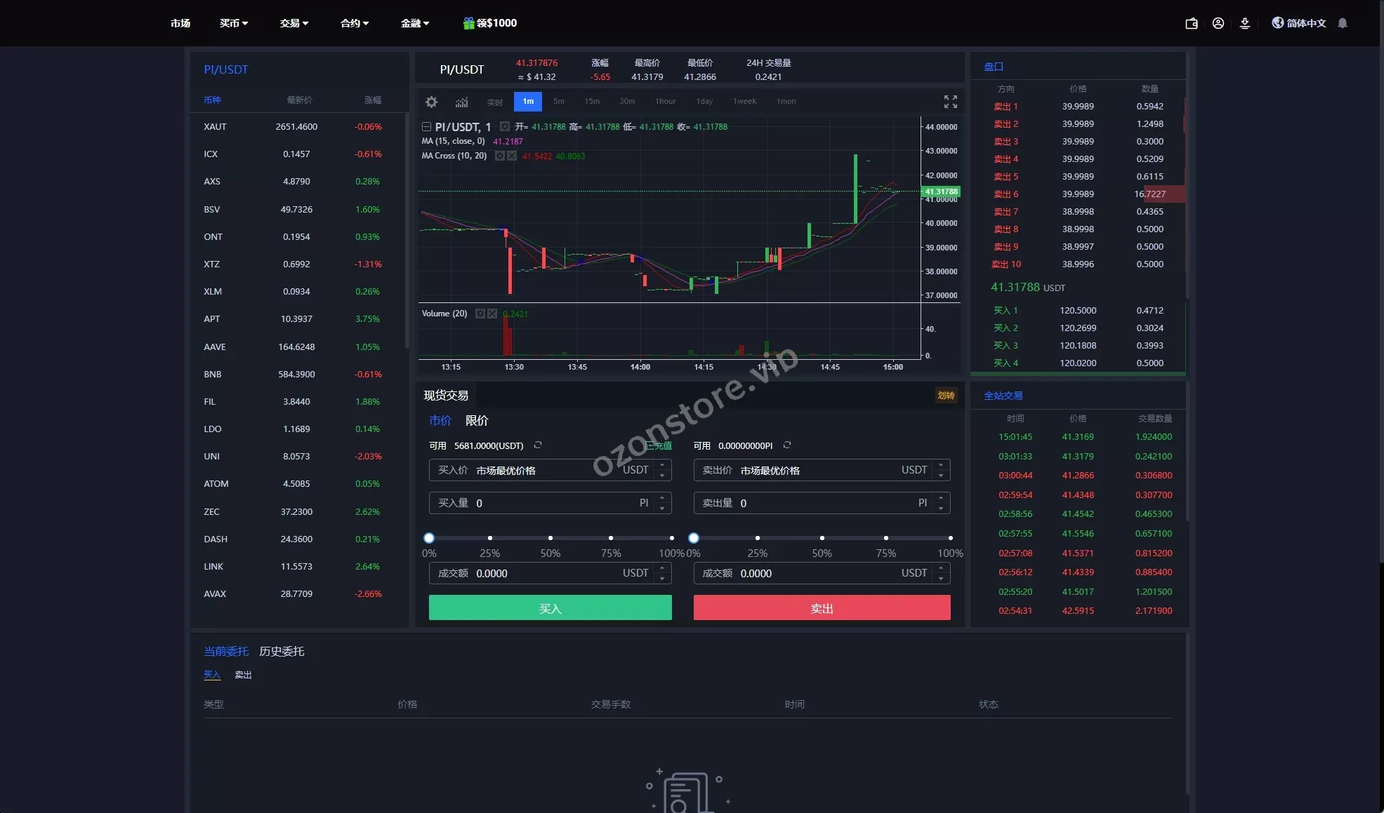 - 币币交易(现货交易):支持主流币种的现货交易,简洁高效。