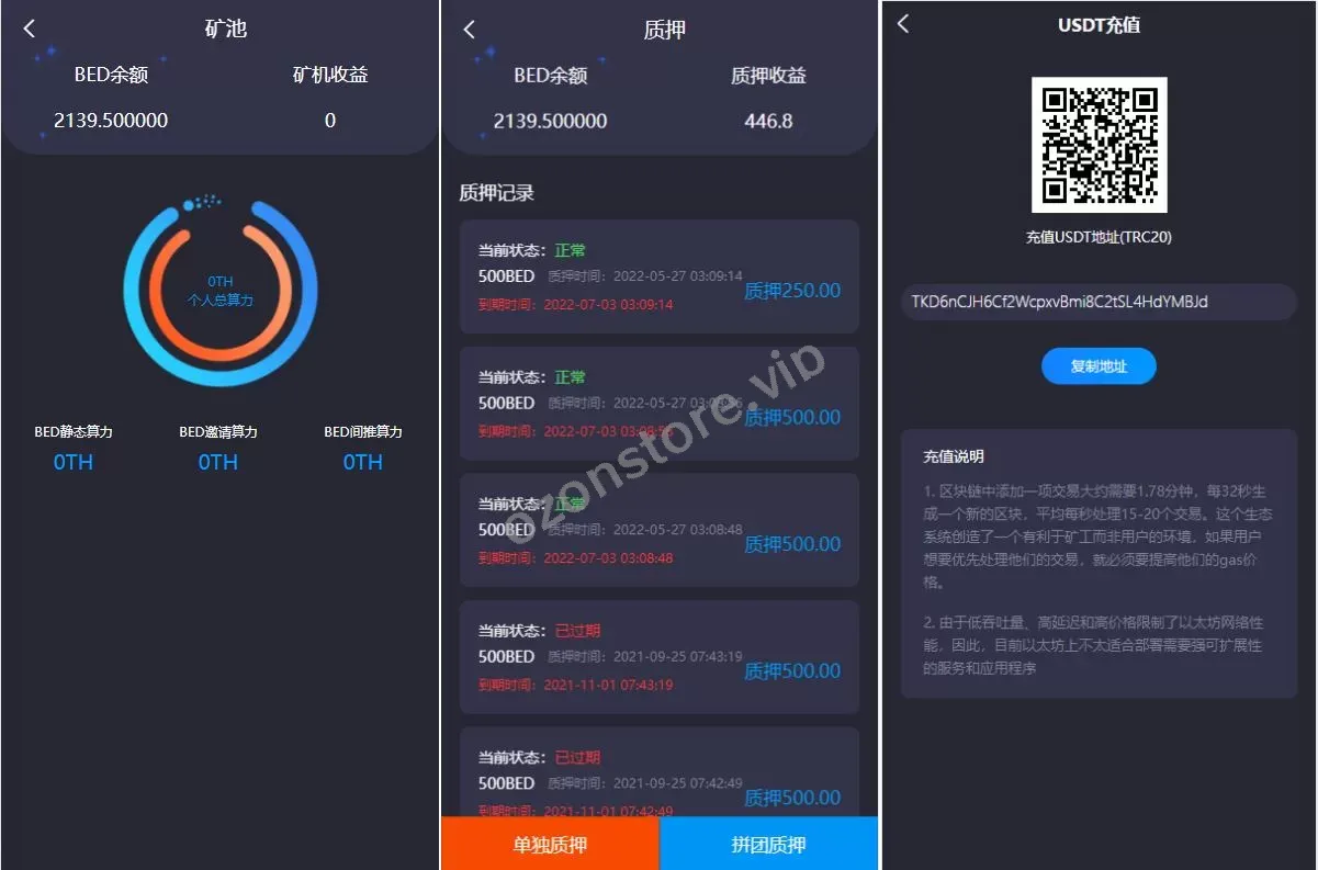 一款虚拟币质押锁仓理财系统,质押分红理财分红等,具体看图
