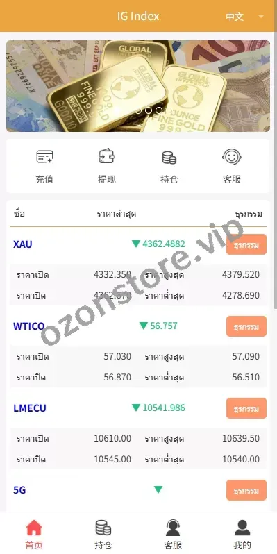 前端自带多语种,产品行情正常,订单控