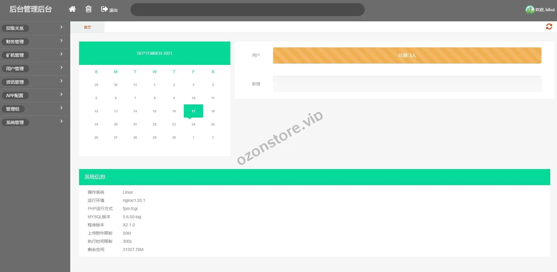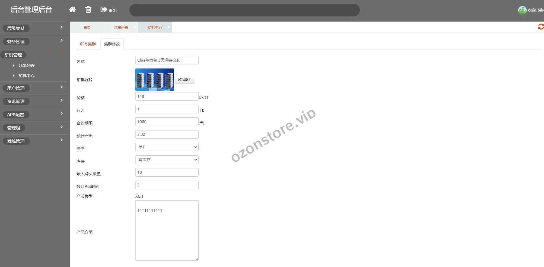 7、后台可管理会员信息、矿机信息、奖励信息