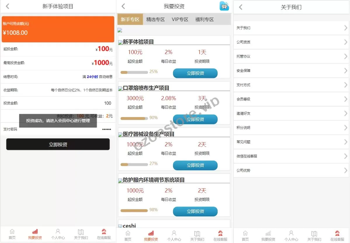 影视投资系统/投资理财/分红返利/自带客服系统