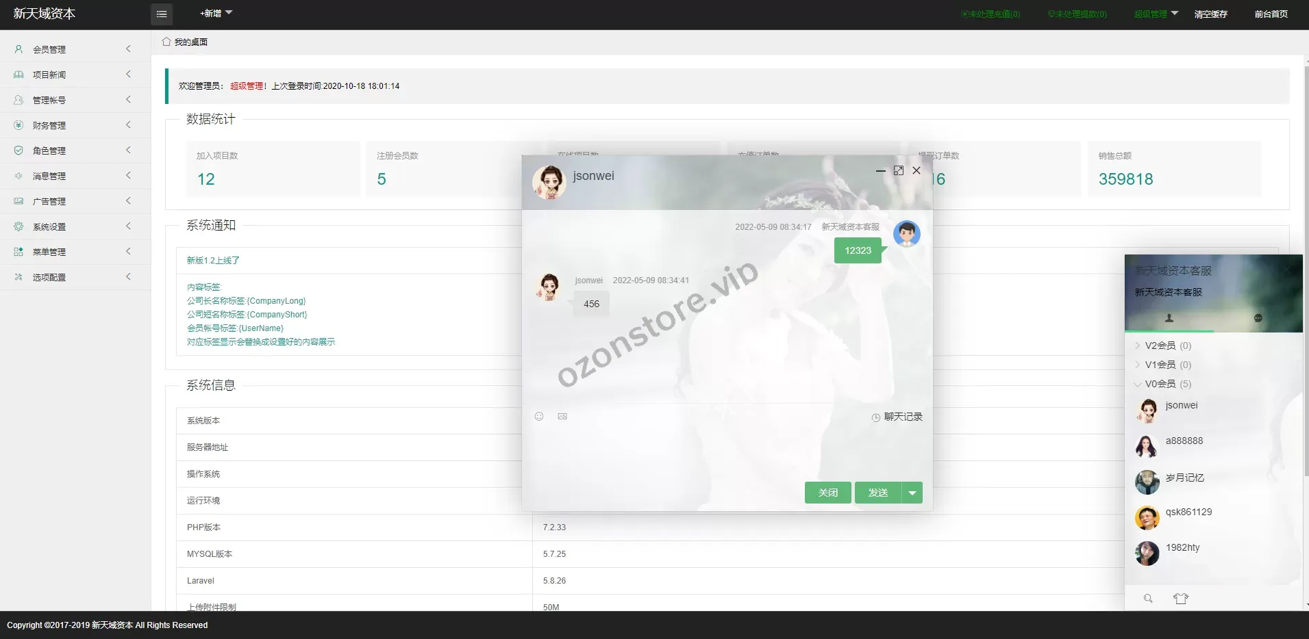 系统自带客服系统,后台可查看在线回复等
