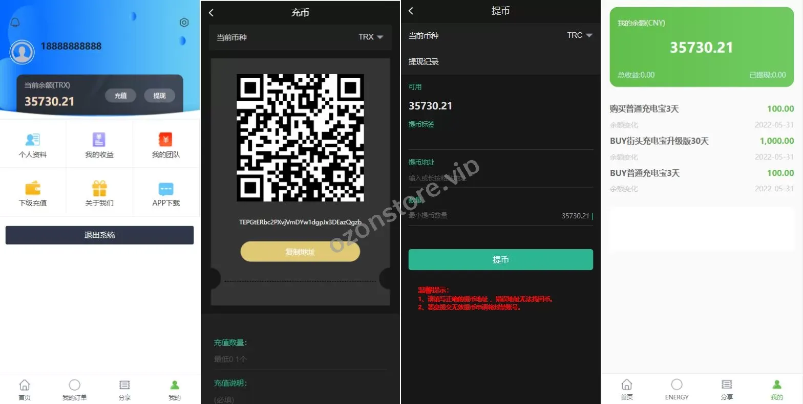 独家开发版六国语言充电宝投资系统源码——国外虚拟投资理财与TRX充值平台